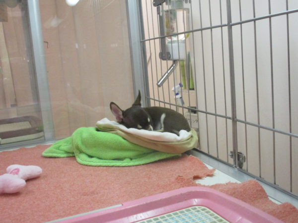チワちゃんはベッドを高くして寝てました![]()